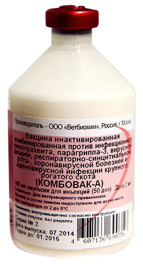 Вакцина инактивированная комбинированная против инфекционного ринотрахеита, парагриппа-3, вирусной диареи, респираторно-синцитиальной, рота- и коронавирусной болезней крупного рогатого скота.