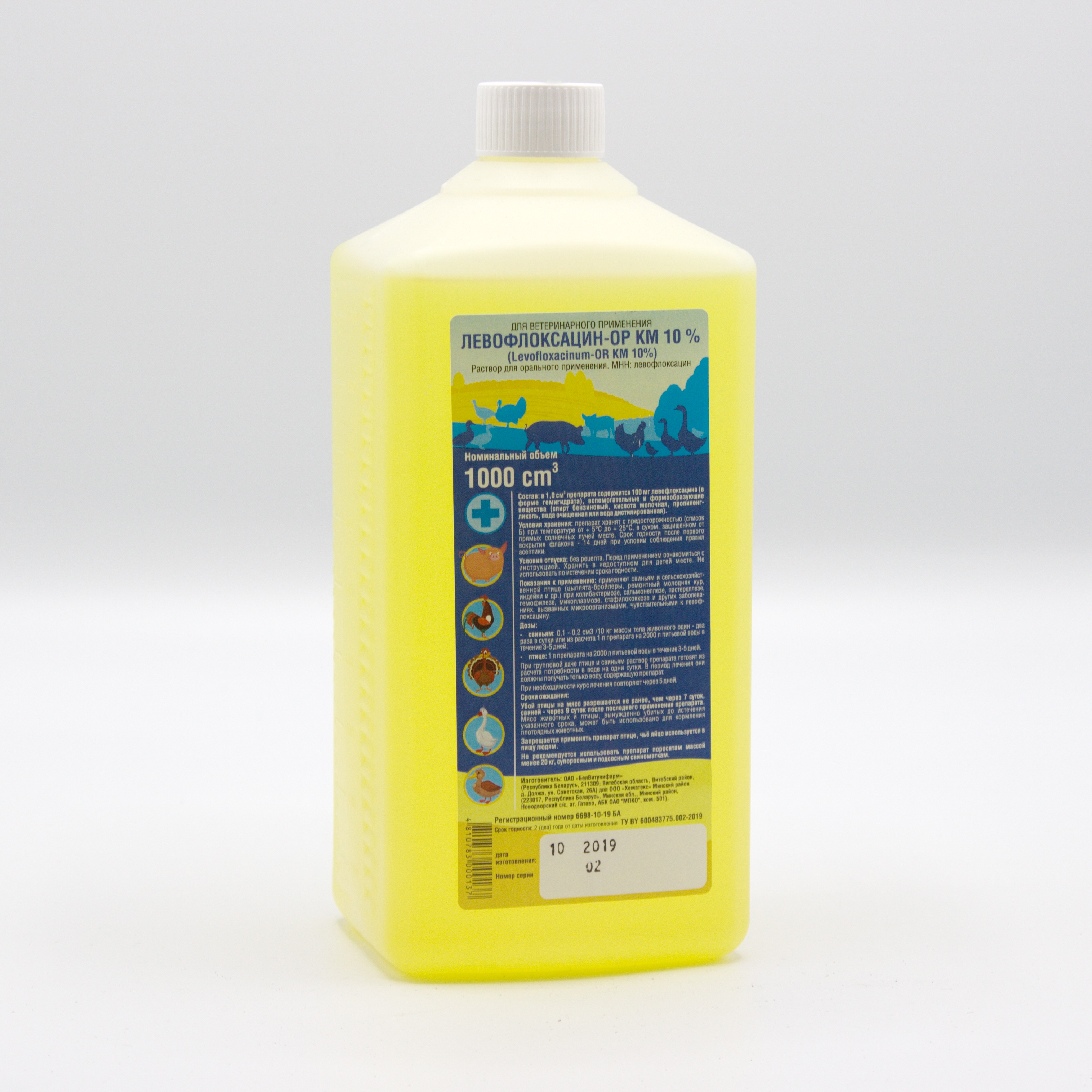 Применяют свиньям и сельскохозяйственной птице (цыплята-бройлеры, ремонтный молодняк кур, индейки и др.) при колибактериозе, сальмонеллезе, пастереллезе, гемофилезе, микоплазмозе, стафилококкозе и других заболеваниях, вызванных микроорганизмами, чувствительными к левофлоксацину.